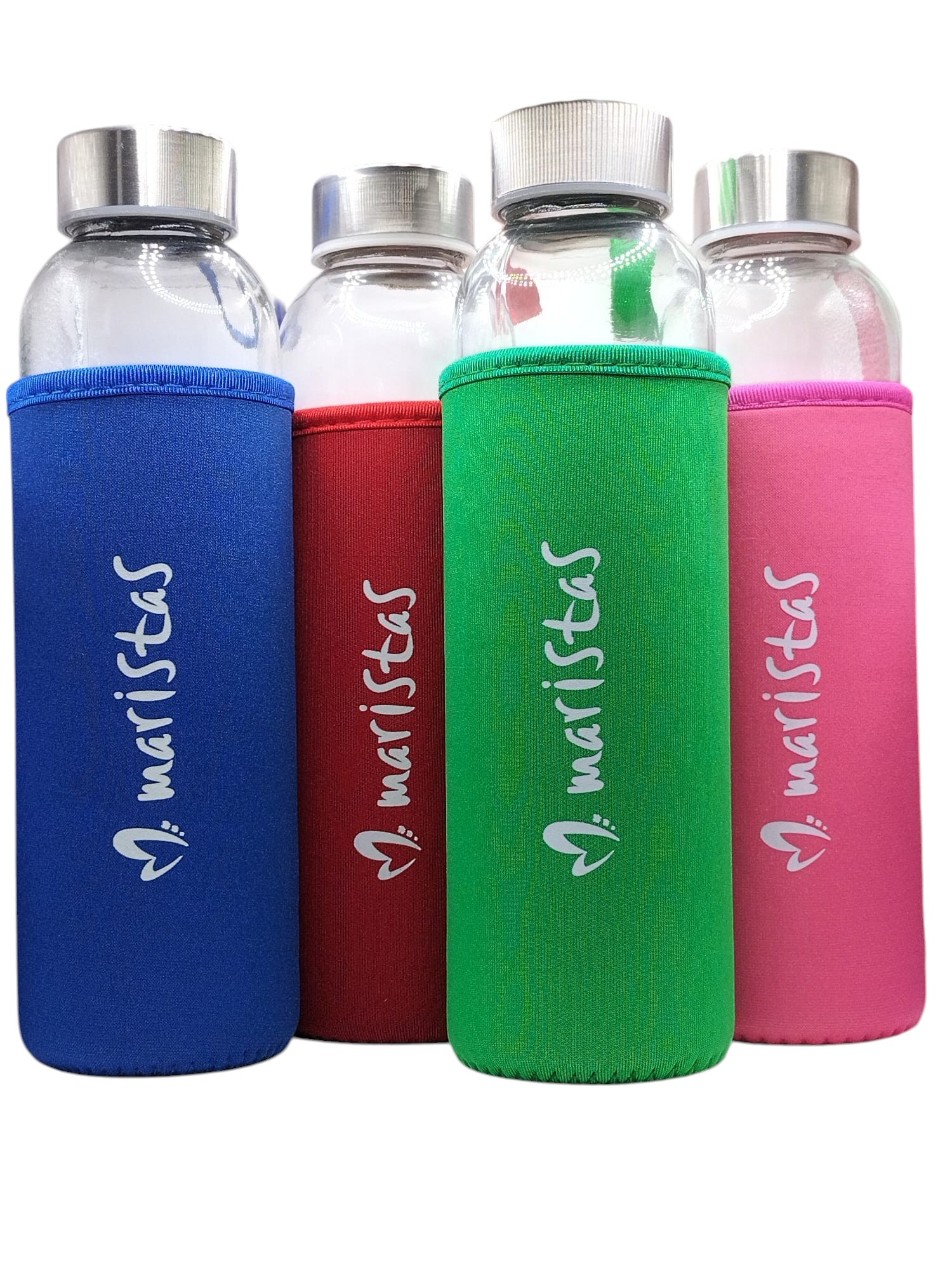 3,72€Bidón de cristal de 500 ml de capacidad y funda realizada con neopreno, combinada con una cinta de transporte a color. Personalizado con Maristas. -
