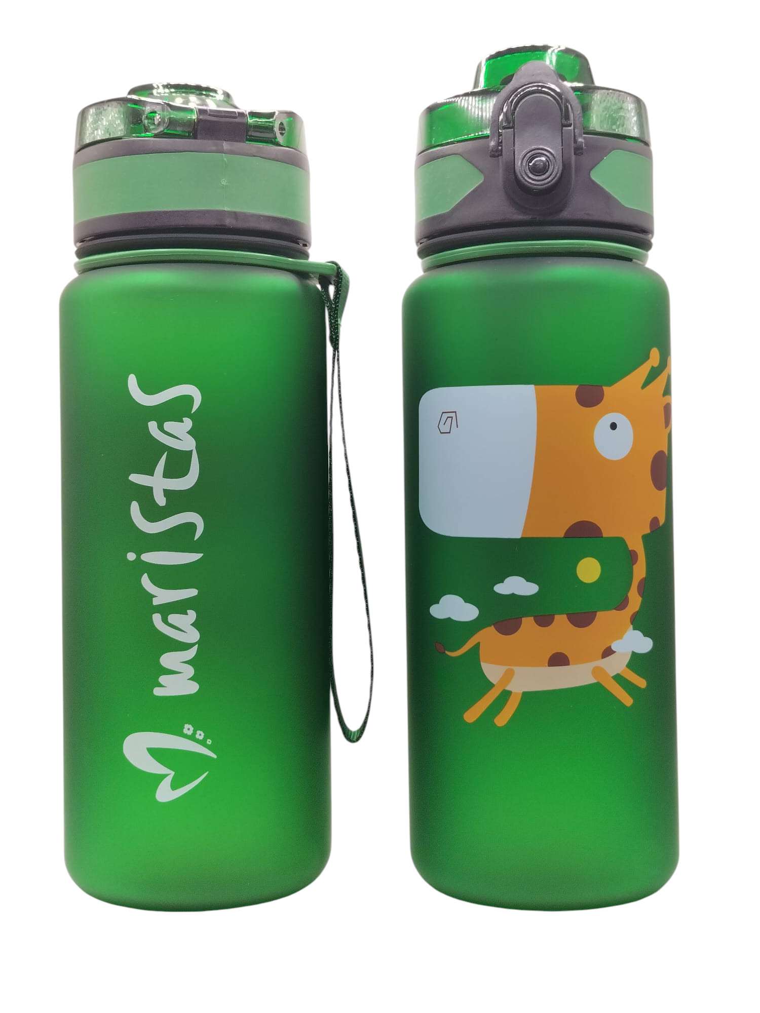 El bidón de tritán Maristas, con diseño infantil tiene una capacidad de 500 ml, ideal para niños. Incluye un cierre de seguridad con pulsador para evitar derrames y un asa de transporte a juego para mayor comodidad. Material resistente y libre de BPA, haciendo de este bidón una opción perfecta para llevar bebidas a la escuela o actividades al aire libre.