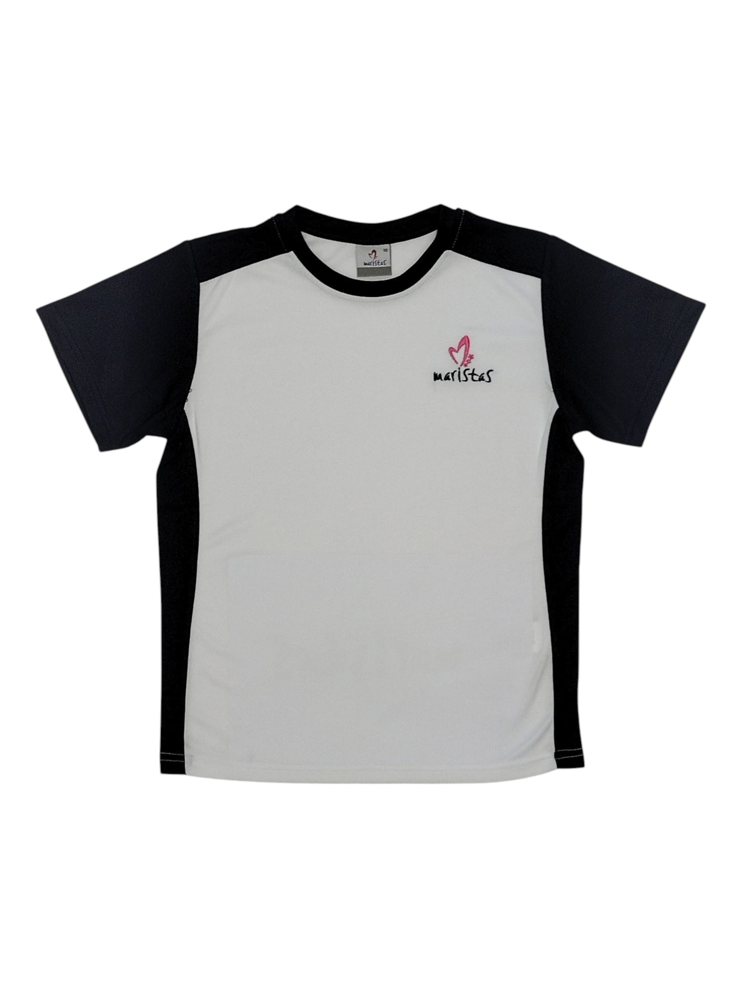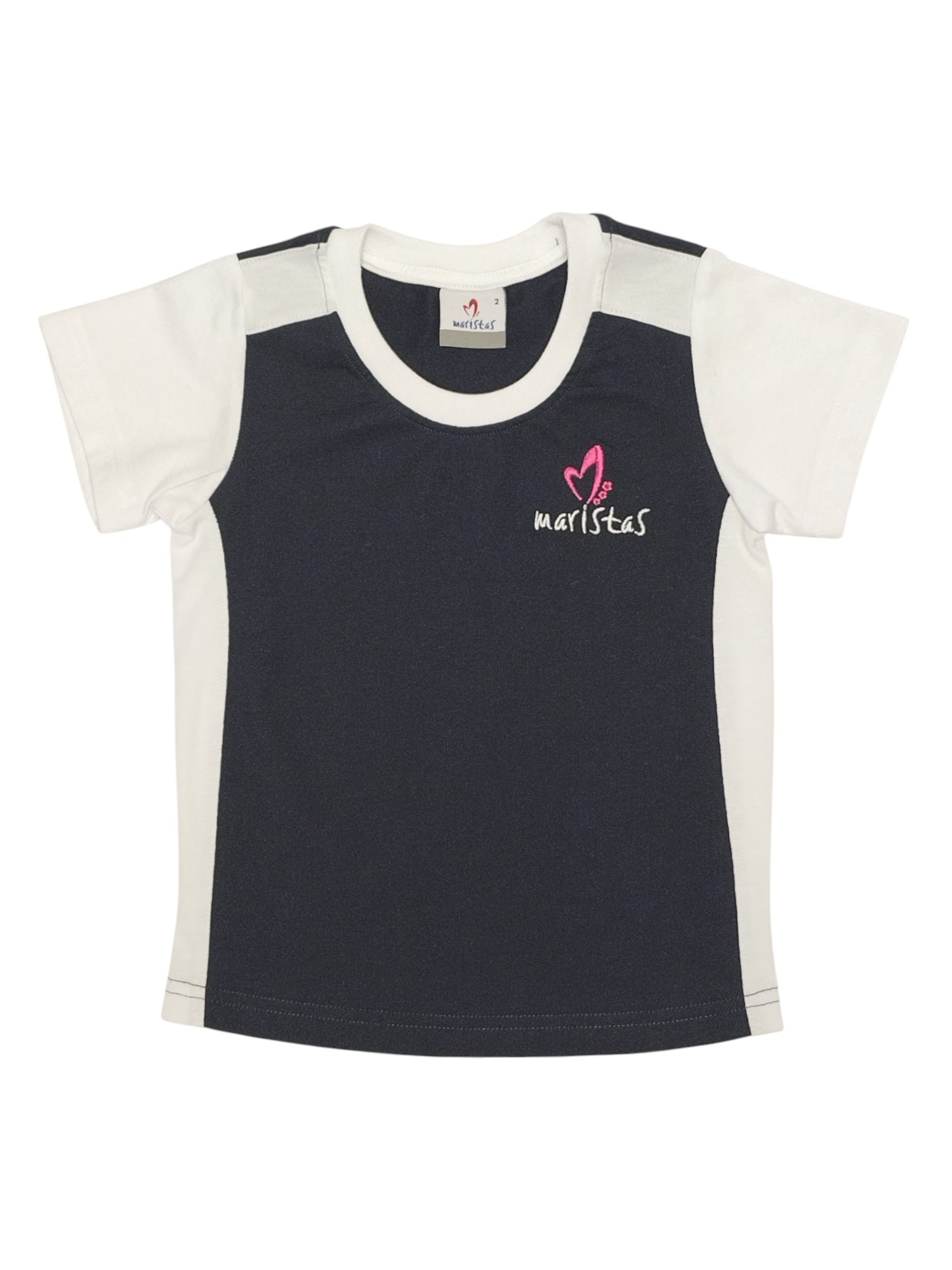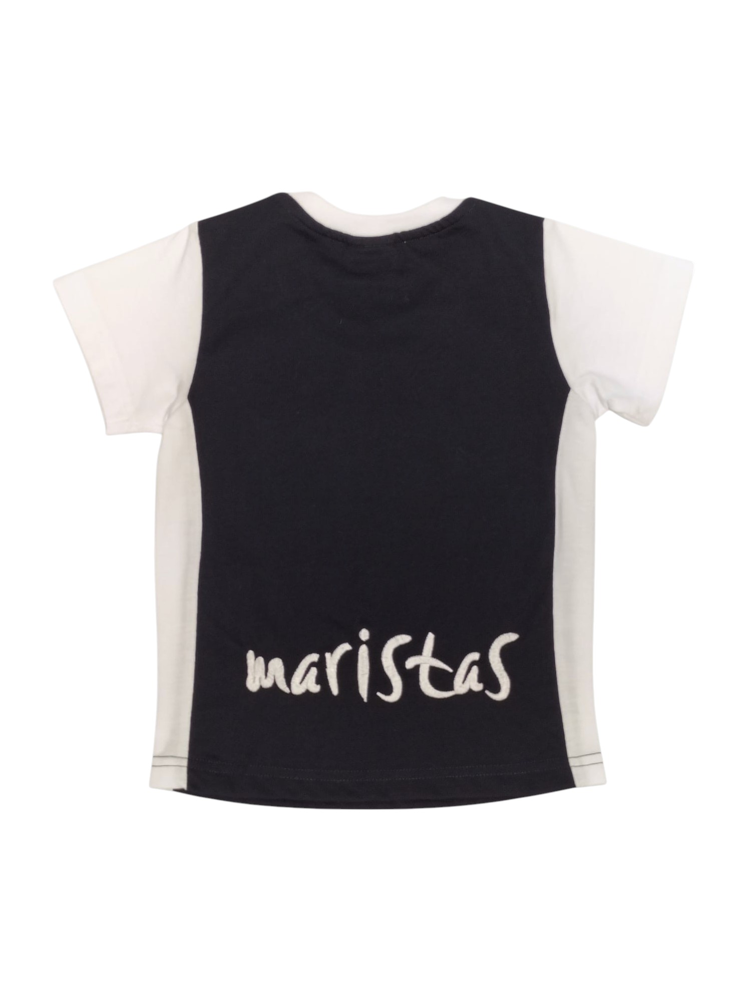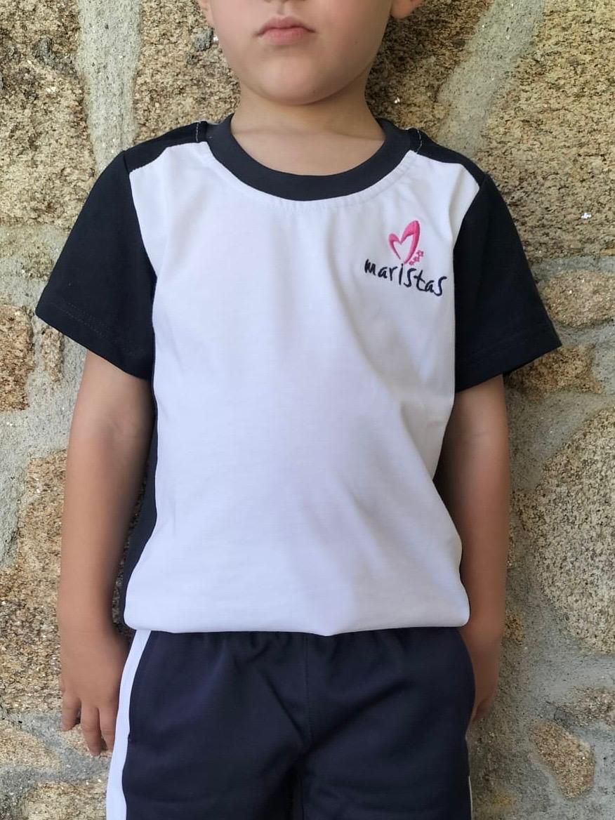 50% poliéster y 50% algodón. Tallas de la 2 a la 14 (pares). Logo bordado en el pecho izquierdo y maristas bordado en el bajo de la parte trasera. Opción en blanco y marino. USO EN INFANTIL Y PRIMARIA. Instrucciones de lavado: temperatura máxima de lavado 30º, NO usar lejía, plancha a temperatura media, admite lavado en seco (sin tricoloroetano) y NO usar secadora.